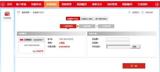 網(wǎng)上銀行超級(jí)網(wǎng)銀->批量跨行快匯