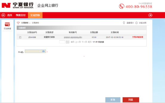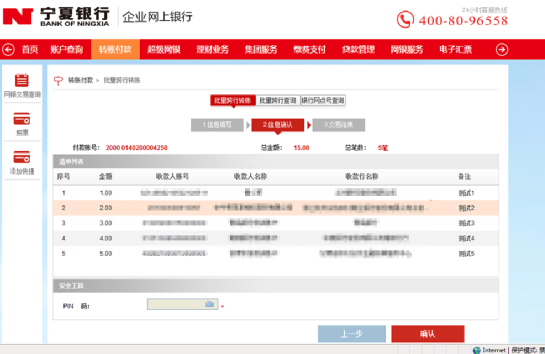 4、進(jìn)入確認(rèn)頁面,查看收款信息是否正確,無誤后請輸入證書pin碼,點(diǎn)擊“確認(rèn)”